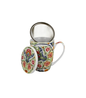 Kubek z zaparzaczem MAYFLOWER wchodzący w skład linii ETHNIC, wykonany z porcelany New Bone China, charakteryzującej się elegancką i naturalną kremowo - białą barwą z delikatnym połyskiem a także wyjątkową wytrzymałością przy zachowaniu lekkości i delikatności.