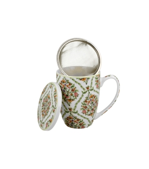 Kubek z zaparzaczem FIORI wchodzący w skład linii ETHNIC, wykonany z porcelany New Bone China, charakteryzującej się elegancką i naturalną kremowo - białą barwą z delikatnym połyskiem a także wyjątkową wytrzymałością przy zachowaniu lekkości i delikatności.