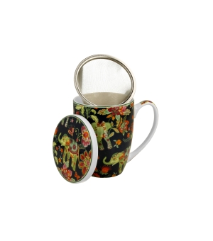 Kubek z zaparzaczem ANKUR BLUE wchodzący w skład linii ETHNIC, wykonany z porcelany New Bone China, charakteryzującej się elegancką i naturalną kremowo - białą barwą z delikatnym połyskiem a także wyjątkową wytrzymałością przy zachowaniu lekkości i delikatności.