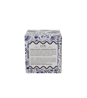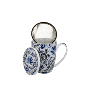 Kubek z zaparzaczem NARESH BLUE wchodzący w skład linii ETHNIC, wykonany z porcelany New Bone China, charakteryzującej się elegancką i naturalną kremowo - białą barwą z delikatnym połyskiem a także wyjątkową wytrzymałością przy zachowaniu lekkości i delikatności.