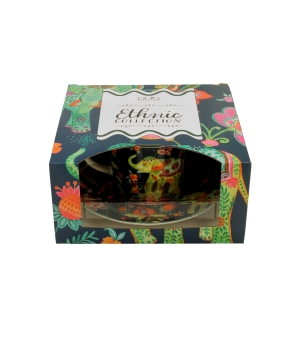 Filiżanka ze spodkiem ANKUR BLUE wchodząca w skład linii ETHNIC, wykonany z porcelany New Bone China, charakteryzującej się elegancką i naturalną kremowo - białą barwą z delikatnym połyskiem a także wyjątkową wytrzymałością przy zachowaniu lekkości i delikatności.