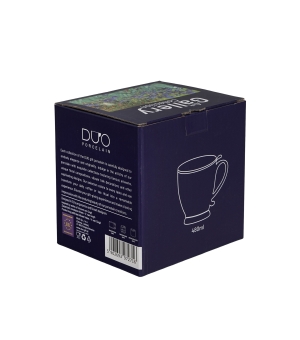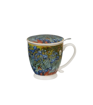 Kubek z zaparzaczem na stopce IRISES inspired by Van Gogh wchodzący w skład serii Art Gallery, wykonany z porcelany New Bone China, charakteryzującej się elegancką i naturalną kremowo - białą barwą z delikatnym połyskiem, a także wyjątkową wytrzymałością.