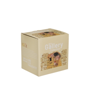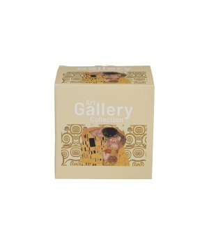 Kubek na stopce z zaparzaczem THE KISS ECRU inspired by Gustav Klimt wchodzący w skład serii Art Gallery, wykonany z porcelany New Bone China, charakteryzującej się elegancką i naturalną kremowo - białą barwą z delikatnym połyskiem, a także wyjątkową wytrzymałością.