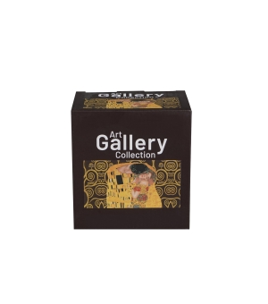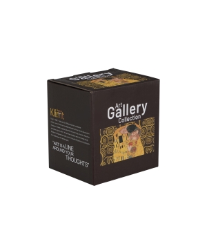 Kubek z metalowy zaparzaczem z zawieszką THE KISS BROWN inspired by Gustav Klimt wchodzący w skład serii Art Gallery, wykonany z porcelany New Bone China, charakteryzującej się elegancką i naturalną kremowo - białą barwą z delikatnym połyskiem, a także wyjątkową wytrzymałością.