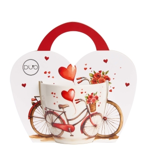 Kubek 460 ml w "koszyczku" ROWER wchodzący w skład serii SERCA, charakteryzuje się naturalnym kremowo-białym kolorem z delikatnym połyskiem oraz wyjątkową wytrzymałością i trwałością, zachowując lekkość i finezję.